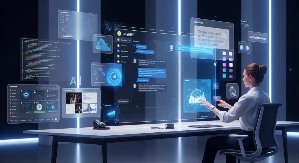 ChatGPT review 2025 – using ChatGPT in a futuristic workspace